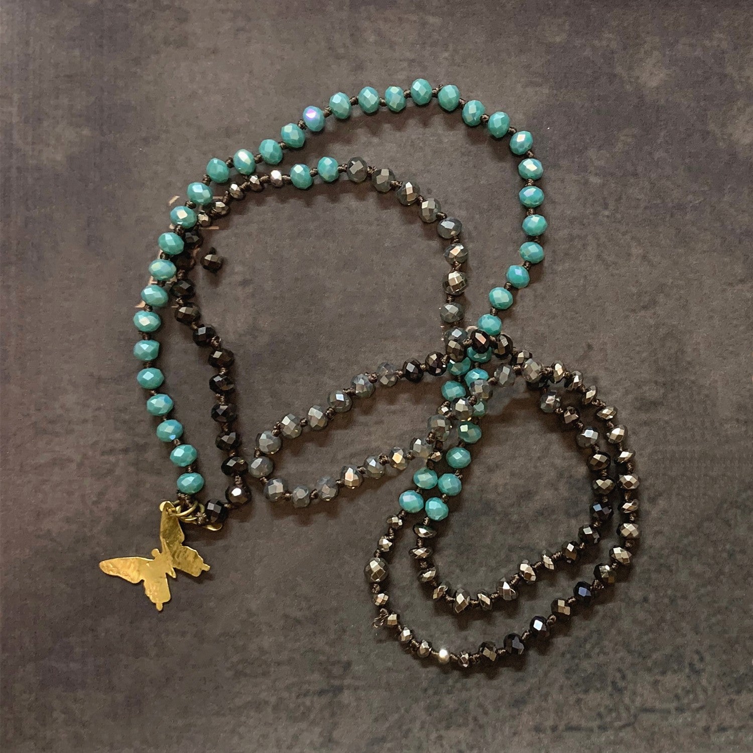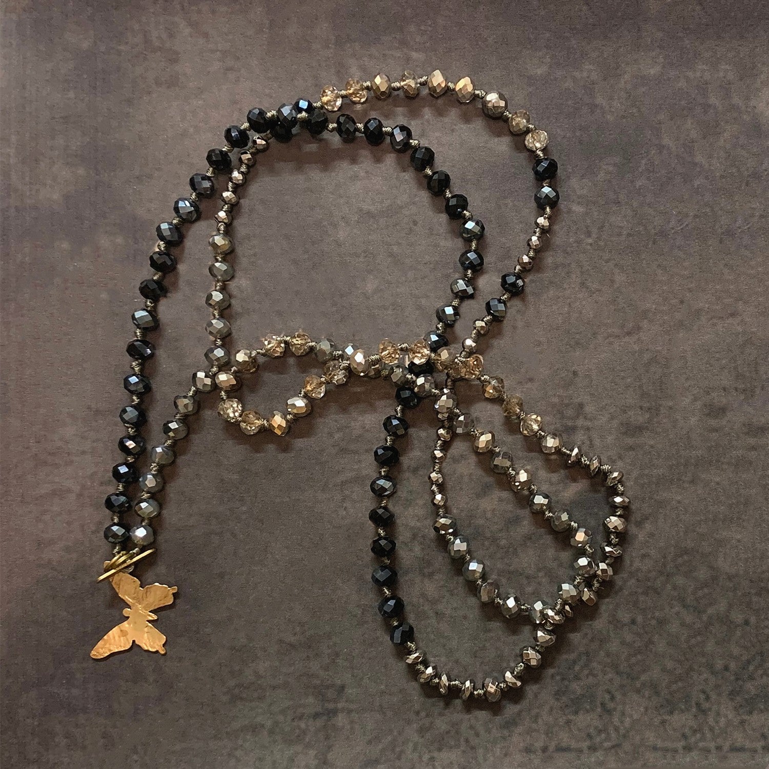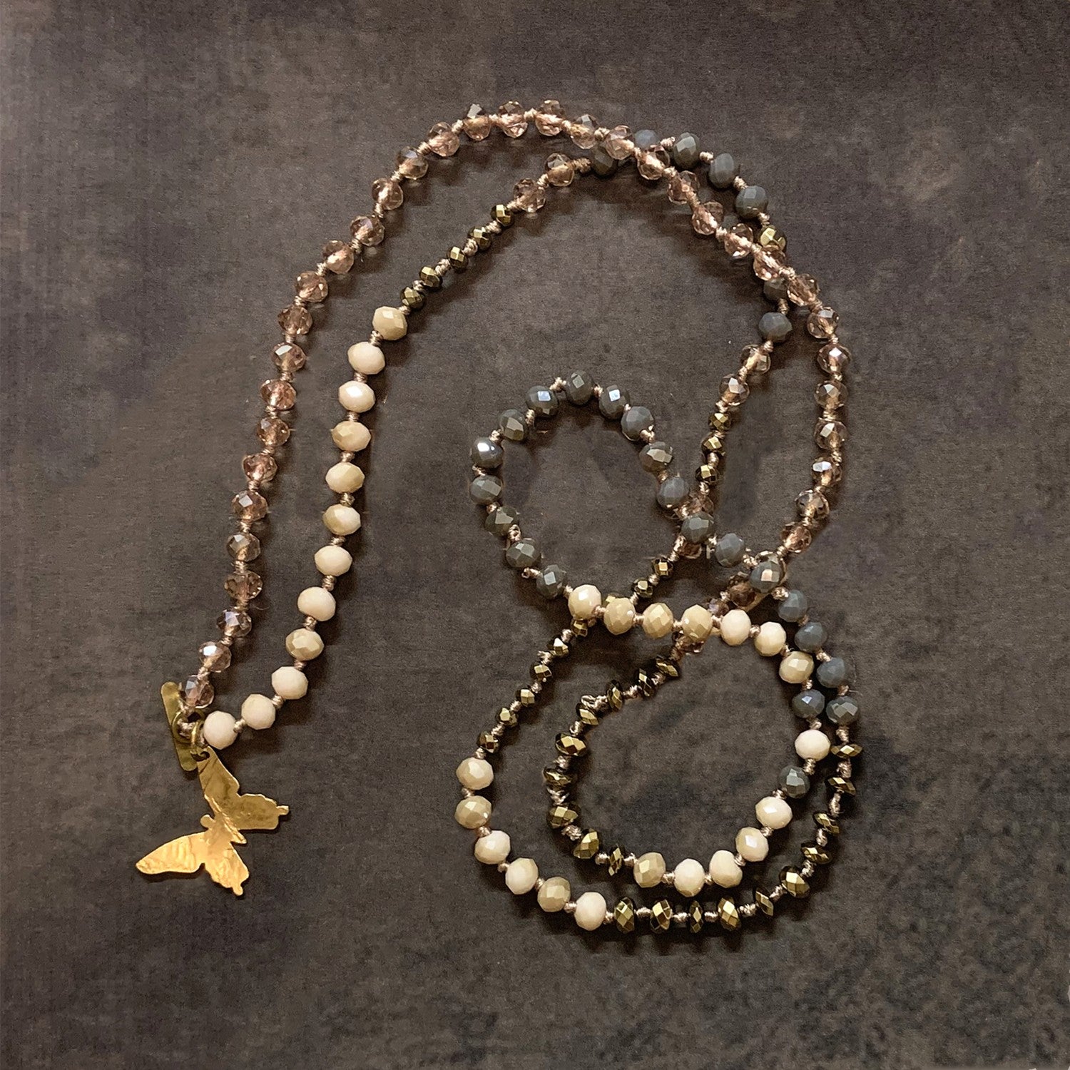 VIKIKO handmade Knotted Necklace Jewelry Gifts Vintage Crystal Beaded Necklace Butterfly Pendant Necklace
