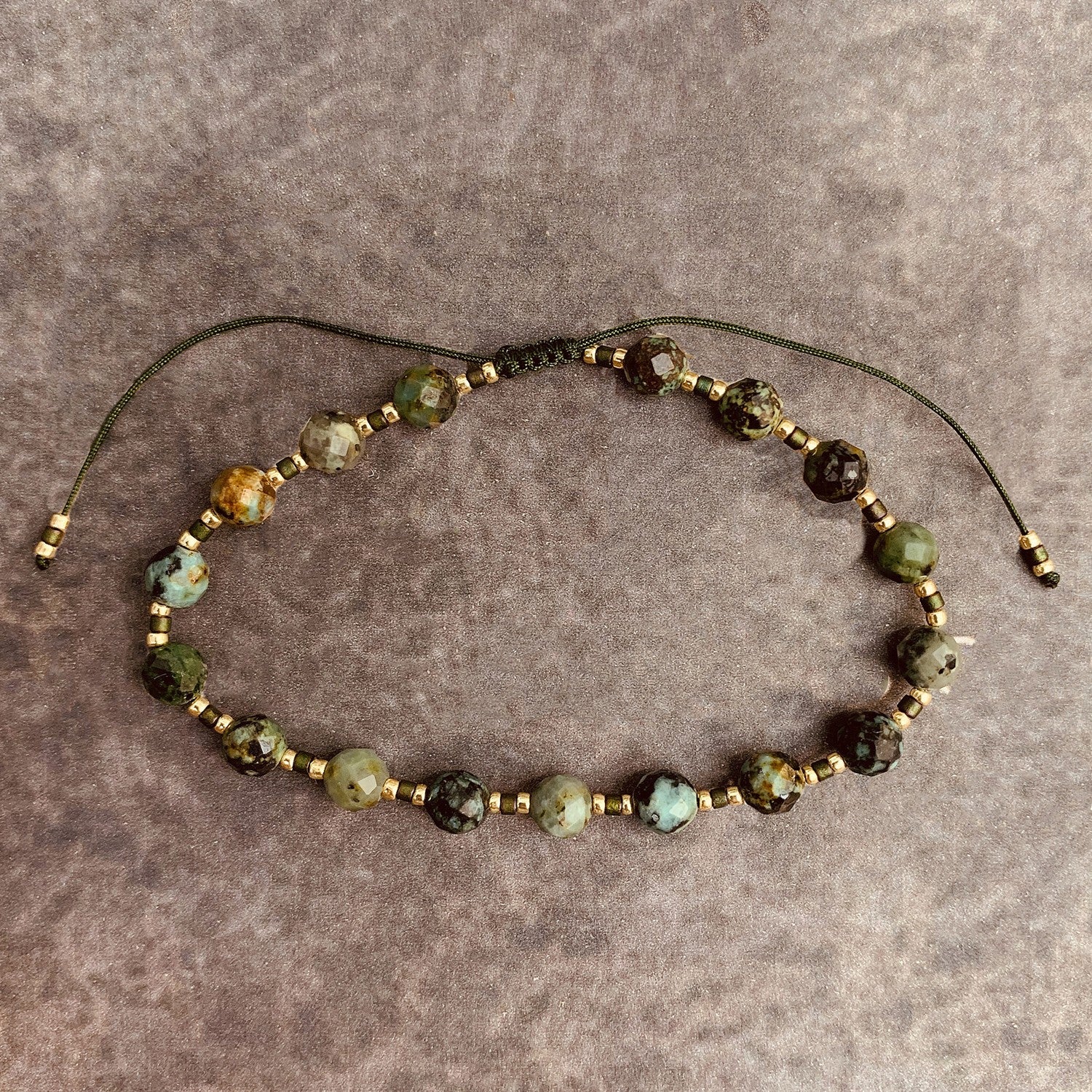 VIKIKO Natural African Turquoise Bracelet Set Handmade Woven Cloth Fabric Bracelet Jewelry Gift for Her